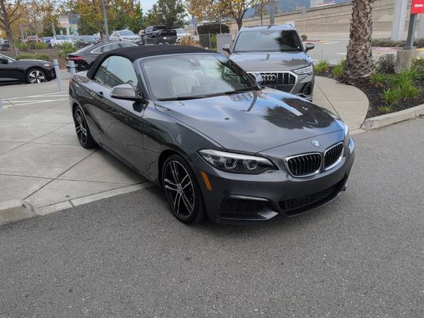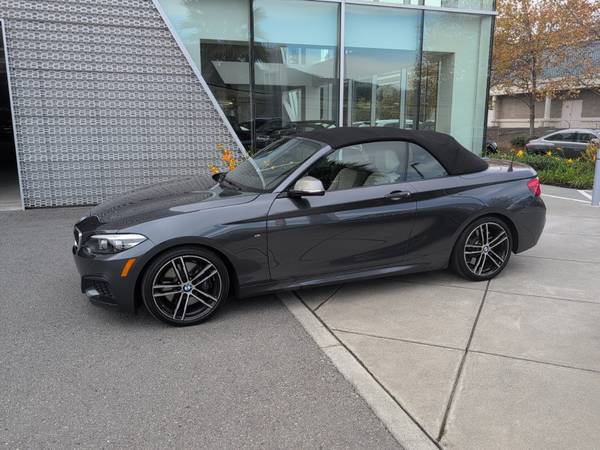 Audi Marin is delighted to showcase, this Pre-Owned 2019 BMW 2 Series M240i xDrive Convertible finished in a striking Mineral Grey Metallic exterior paired with an elegant Oyster interior, combining open-air freedom with the exhilarating performance of BMW’s M Performance lineup.