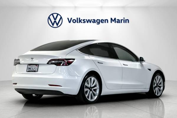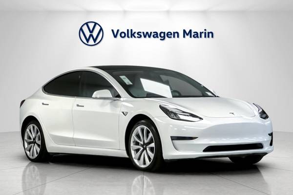 Volkswagen Marin is delighted to showcase, this Pre-Owned 2019 Tesla Model 3 Standard Range Plus Dressed in a sleek Pearl White Multi-Coat exterior paired with a modern White/Black interior, this all-electric sedan delivers cutting-edge technology, exhilarating performance, and everyday efficiency.