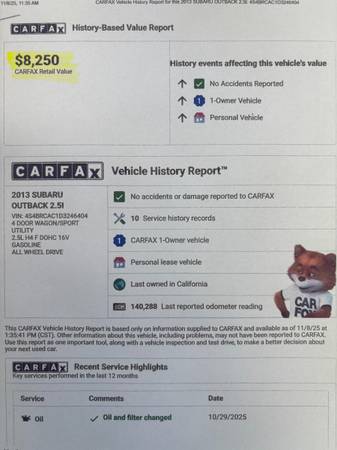 PRICED BELOW RETAIL VALUE!! CLEAN TITLE, CLEAN CAR FAX, CLEAN NMVTIS TITLE REPORT smog and safety checked by ASE certified mechanic new air filter, new wipers drives good- clean ONE OWNER!!...