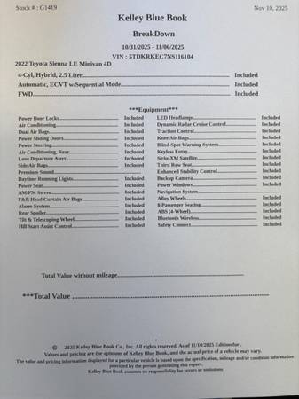 ONE OWNER!! VERY CLEAN LOW LOW MILES 2022 TOYOTA SIENNA LE MINIVAN BRAUNABILITY FOLDOUT & INFLOOR PWER WHEEL CHAIR VAN REGSTERED UNTIL AUG 2026 smog and safety checked by ASE certified mechanic...