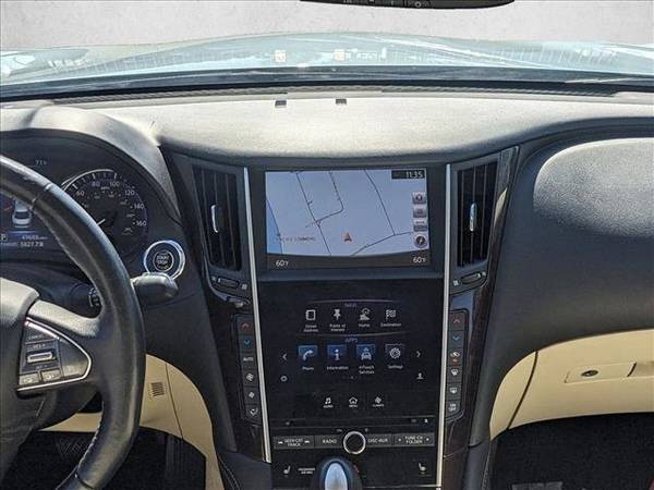 * [F01] Driver Assistance Package * [P02] 3.0T Premium Plus Package * [X01] Leather Seating Package * Sun/Moonroof * Navigation System * [N10] Illuminated Kick Plates * [X02] Maple Wood Accent Package * [B92] Splash Guards * Keyless Start * [C03] 50 State Emissions * Hagane Blue * Wheat; SeatingThis vehicle includes a Money-Back Guarantee* and passed our precise inspection process. Best of all the price you see is the price you pay. No haggling. No back and forth. No pressure. And this price is so good it is guaranteed. *Money-Back Guarantee is valid for 5 days or 250 miles, whichever comes first. Subject to certain terms and conditions. See store for details. Some restrictions apply.Looking for a clean, well-cared for 2016 INFINITI Q50? This is it. This low mileage INFINITI Q50 has barely been touched. It's the next best thing to buying new. Surprising quality accompanied by a high level of performance...this Hagane Blue on 732 INFINITI Q50 3.0t Premium could end up being the perfect match for you.You could keep looking, but why? You've found the perfect vehicle right here. More information about the 2016 INFINITI Q50:The 2016 INFINITI Q50 is a stylish, sophisticated, high-performance sports sedan, with European competitors squarely in its sights. Even in the base trim, the Q50 offers a host of luxury and technology features that are hard to beat. And the new twin-turbo V6, with up to 400 horsepower available, easily trumps output from the top-tier models from BMW and Audi.This model sets itself apart with Aggressive styling, potent turbocharged engines, balanced, athletic handling, hybrid availability, and premium luxury features
