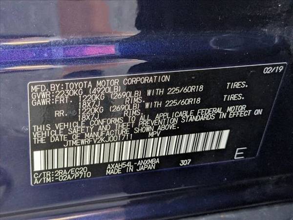 * Sun/Moonroof * Xse Weather Package * Lane Keeping Assist * Keyless Start * Rear Spoiler * 50 State Emissions * Black; Softex Seat Trim (Ec) * Xse PackageThis vehicle includes a Money-Back Guarantee* and passed our precise inspection process. Best of all the price you see is the price you pay. No haggling. No back and forth. No pressure. And this price is so good it is guaranteed. *Money-Back Guarantee is valid for 5 days or 250 miles, whichever comes first. Subject to certain terms and conditions. See store for details. Some restrictions apply.ONLY AT AUTONATION HONDA SANFORD PLEASE CALL 407-323-6100. Contact Autonation Honda Sanford today for information on dozens of vehicles like this 2019 Toyota RAV4 Hybrid XSE. A test drive can only tell you so much. Get all the info when you purchase a vehicle like this with a CARFAX one-owner report. The Toyota RAV4 is the benchmark all other SUVs strive to meet. With exceptional power, towing and handling, this SUV can handle anything thrown at it. This 2019 Toyota RAV4 has great acceleration and wonderful styling without sacrificing exceptional fuel economy. Enjoy safety and stability with this all-wheel drive vehicle and drive with confidence in any condition. The RAV4 Hybrid XSE has been lightly driven and there is little to no wear and tear on this vehicle. The care taken on this pre-owned vehicle is reflective of the 65,587mi put on this Toyota.