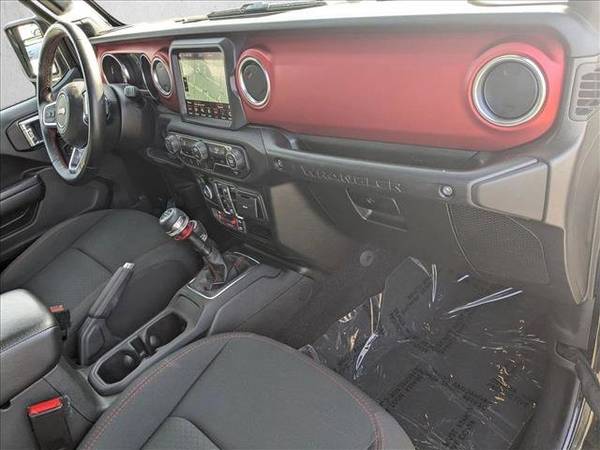* 8.4" Radio & Premium Audio Group * Steel Bumper Group * Black 3-Piece Hard Top * Led Lighting Group * Alpine Premium Audio System * Mopar Hardtop Headliner * Navigation System * Black Clearcoat * Mopar All-Weather Floor Mats * Keyless Start * Convertible Hardtop * 4.10 Rear Axle Ratio * Black; Premium Cloth Low-Back Bucket Seats * Engine: 3.6L V6 24V Vvt Upg I W/Ess * Front License Plate Bracket * Gvwr: 5;800 Lbs * Performance Suspension * Radio: Uconnect 4C Nav W/8.4" Display * Tires: Lt285/70R17C Bsw Off-Road * Transmission: 6-Speed Manual * Wheels: 17" X 7.5" Machined W/Black PocketsThis vehicle includes a Money-Back Guarantee* and passed our precise inspection process. Best of all the price you see is the price you pay. No haggling. No back and forth. No pressure. And this price is so good it is guaranteed. *Money-Back Guarantee is valid for 5 days or 250 miles, whichever comes first. Subject to certain terms and conditions. See store for details. Some restrictions apply.This 2021 Jeep Wrangler Unlimited Rubicon is offered to you for sale by AutoNation Toyota Hayward. This Jeep includes: ENGINE: 3.6L V6 24V VVT UPG V6 Cylinder Engine Gasoline Fuel *Note - For third party subscriptions or services, please contact the dealer for more information.* This Jeep Wrangler Unlimited Rubicon is an incredibly versatile vehicle that is a must have for any family. The Jeep Wrangler Unlimited Rubicon's pristine good looks were combined with the Jeep high standard of excellence in order to make this a unique find. Taking the road less traveled has never been more fun than with this 4WD. With improved performance, mileage and acceleration, this 2021 4WD Jeep Wrangler Unlimited Rubicon is king of the off-road. This 2021 Jeep Wrangler has such low mileage it has been parked more than driven.