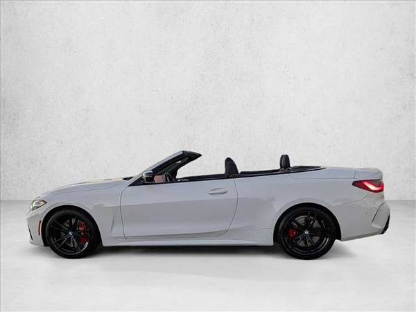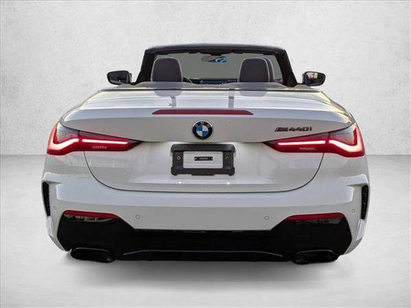 * Harman/Kardon Surround Sound System * Parking Assistance Package * Wheels: 19" X 8" Fr & 19" X 8.5" Rr (Style 791M) * Heated Front Seats * Navigation System * Shadowline Package * Heated Steering Wheel * Keyless Start * Convertible Soft Top * Alpine White * Black; Perforated Sensatec Upholstery * Open Pore Fine Wood Oak Grain TrimThis vehicle includes a Money-Back Guarantee* and passed our precise inspection process. Best of all the price you see is the price you pay. No haggling. No back and forth. No pressure. And this price is so good it is guaranteed.This outstanding example of a 2024 BMW 4 Series M440i is offered by BMW of Fremont. This BMW includes: SHADOWLINE PACKAGE ALPINE WHITE OPEN PORE FINE WOOD OAK GRAIN TRIM Woodgrain Interior Trim PARKING ASSISTANCE PACKAGE Automatic Parking Rear Parking Aid Back-Up Camera Aerial View Display System HEATED FRONT SEATS Heated Front Seat(s) HEATED STEERING WHEEL Heated Steering Wheel WHEELS: 19 Tires - Front Performance Tires - Rear Performance BLACK, PERFORATED SENSATEC UPHOLSTERY Vinyl Seats Cloth Seats Leather Seats Premium Synthetic Seats HARMAN/KARDON SURROUND SOUND SYSTEM Premium Sound System *Note - For third party subscriptions or services, please contact the dealer for more information.* You'll see the world in a whole new light when you slip behind the wheel of this impressive 2024 BMW 4 Series convertible. Excellence, luxury and stature are just a few of the pillars this car is built upon. The 2024 BMW offers compelling fuel-efficiency along with great value. You will no longer feel the need to repeatedly fill up this BMW 4 Series M440i's gas tank, in part because of it's superb EPA rating. Added comfort with contemporary style is the leather interior to heighten the quality and craftsmanship for the BMW 4 Series M440i.*Money-Back Guarantee is valid for 5 days or 250 miles, whichever comes first. Subject to certain terms and conditions. See store for details. Some restrictions apply.