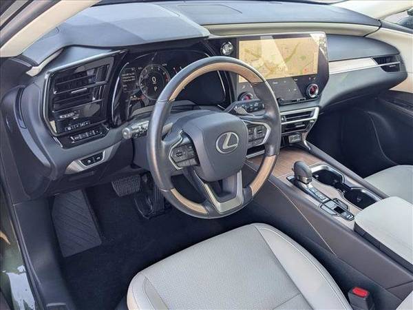 * Radio: Lexus Interface W/14" Hd Touchscreen Display * Panoramic View Monitor * Sun/Moonroof * Navigation System * Illuminated Door Sills * Cross Bars * Digital Key * Power Rear Door W/Kick Sensor * Cold Area Package * Door Edge Film By 3M * Lane Keeping Assist * Keyless Start * Rear Spoiler * Cooled Front Seat(S) * Macadamia; Nuluxe Seat Trim * Nori Green Pearl * Premium PackageThis vehicle includes a Money-Back Guarantee* and passed our precise inspection process. Best of all the price you see is the price you pay. No haggling. No back and forth. No pressure. And this price is so good it is guaranteed. *Money-Back Guarantee is valid for 5 days or 250 miles, whichever comes first. Subject to certain terms and conditions. See store for details. Some restrictions apply.Thank you for visiting another one of BMW of Mountain View's exclusive listings! Carfax is clean one Owner vehicle Don't hesitate to contact BMW of Mountain View. This Lexus RX won't last long.*Money-Back Guarantee is valid for 5 days or 250 miles, whichever comes first. Subject to certain terms and conditions. See store for details. Some restrictions apply.