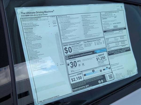 * Brooklyn Grey Metallic * Navigation System * Keyless Start * Red/Black Bicolor; Perforated Veganza UpholsteryThis vehicle includes a Money-Back Guarantee* and passed our precise inspection process. Best of all the price you see is the price you pay. No haggling. No back and forth. No pressure. And this price is so good it is guaranteed. *Money-Back Guarantee is valid for 5 days or 250 miles, whichever comes first. Subject to certain terms and conditions. See store for details. Some restrictions apply.Thank you for visiting another one of BMW of Mountain View's exclusive listings! Carfax is clean one Owner vehicle Don't hesitate to contact BMW of Mountain View. This BMW 2 Series won't last long. RETIRED LOANER.*Money-Back Guarantee is valid for 5 days or 250 miles, whichever comes first. Subject to certain terms and conditions. See store for details. Some restrictions apply.
