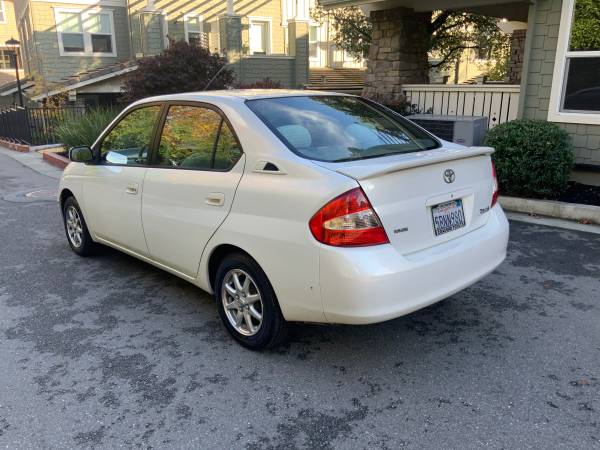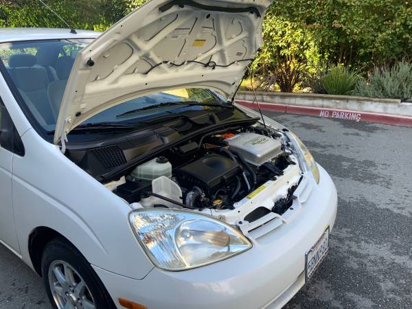 03 Toyota Prius original owner low mileage great commuter car car has just been serviced. The catalytic converter has been recently replaced with a cat security shield. Battery has a three sticker battery which has been replaced. Car has had recent brakes and tires. The color is pearl white car runs and drives perfect great gas mileage Car currently has 157,000 miles on. It will come with current registration and current smog check clean Title price is $5000. Car is located in Marin County. Please see all the pictures as to the condition of the vehicle. Any questions please email me your phone number for quick response. I will not respond to any Chat messages or email.