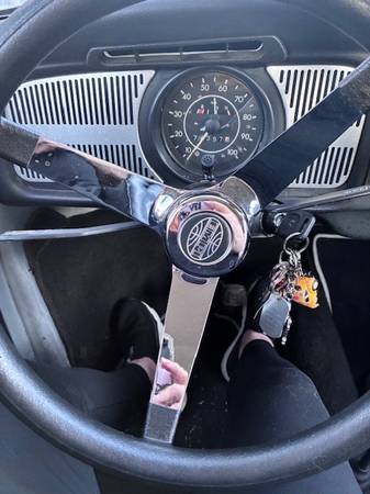 1972 standard VW bug, silver color, new tires, clean title, 911 Porsche rims, rebuild engine, less than 1500 miles on engine. New running boards, new front seats, lower back Pioneer stereo , newer, brakes, front and back rebuilt, transmission rebuilt clutch whole new front end, upper and Lower, 009 distributor electronic ignition, 90 V chrome alternator, chrome, backward firewall. Sold without rack. My car‘s name is Stanley and he runs excellent clean oil and does not leak oil.