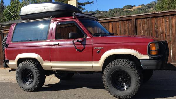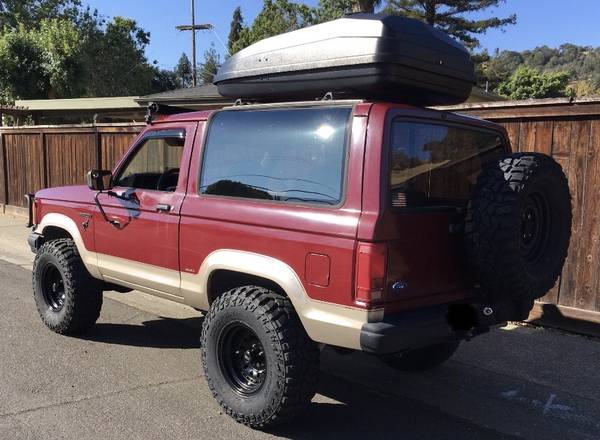 1989 Ford Bronco II 4x4 Eddie Bauer edition with Cabernet Red paint and Light Sandalwood interior. Equipped with Cologne 2.9L V6 fuel-injected engine, A4LD automatic transmission with shift kit, and Borg Warner electric shift transfer case.