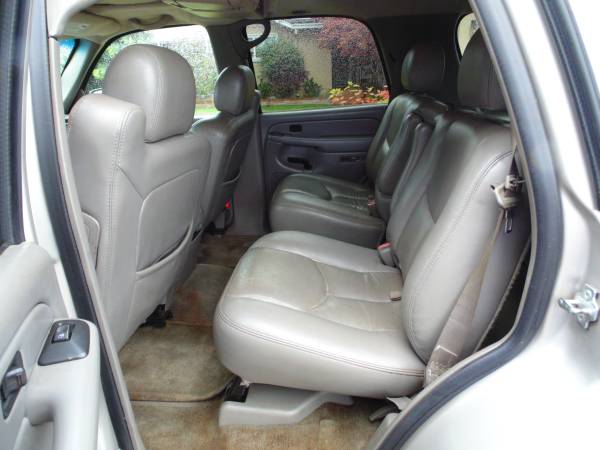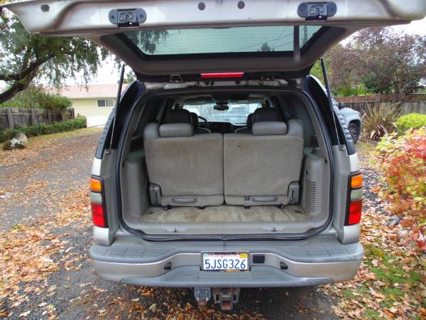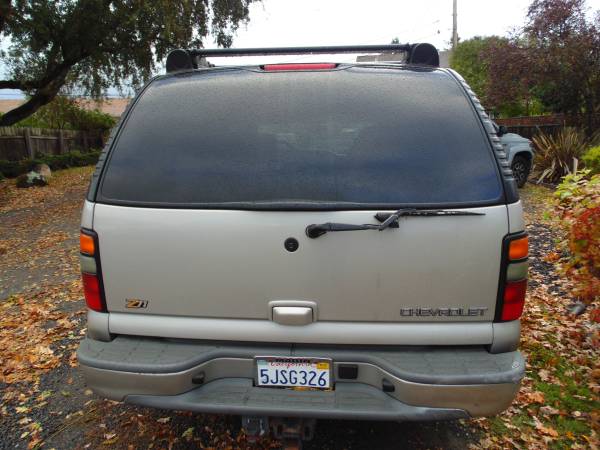 2nd owner - current owner is an AUTO MECHANIC last 20 years,same shop. been in storage the last 2 years. my friend s, health has declined so he has ask me to handle this for him [plus he lives in a very hard to find house in the hills of san anselmo] i live in a easy to find house in novato . this vehicle is loaded with all the Z71 options, 4-wheel drive, 7 passenger, 3 rows of seats] LEATHER[is in exceptional condition] PREMIUM TRAILOR TOWING PACKAGE, ALLOY WHEELS, DURATEC 5.3 liter v-8 full luggage rack, side step railing for easy in and out. tinted glass power everything as u would imagine, FRONT AND REAR, HEATING AND AC , JUST SMOGGED 10-15-25 and reg is good until 10-16-26. vehicle is 21 years old but u can tell it,s been taken care of since new. *** $1160.33 worth of servicing done on 9-18-25 *** google the 2004 Z71 package ,it,s huge, add,s so much more to the vehicle.
