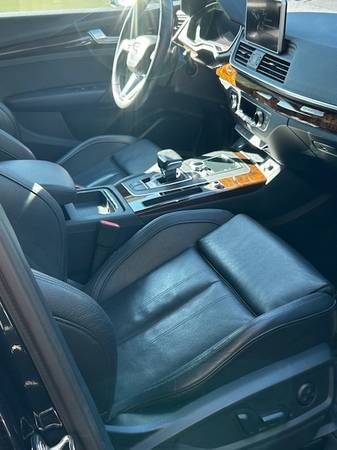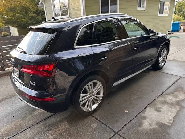 Beautifully maintained 2018 Audi Q5 2.0L TSFI Premium Plus AWD in Moonlight Blue with 89,700 miles and many extras including Warm, Cold and Navigation packages. Heated steering wheel, front cooled seats and both front/rear heated seats, All weather mats front/back, cargo area and cargo cover. One owner with Audi service package and all regular service performed. Clean title, no accidents, no pets, no smoking and in excellent condition. See photos with all features with car packages. Serious offers only, if it is posted it is available.