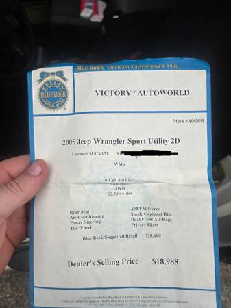 2005 Jeep Wrangler Sport - 2 doors, 4.0L Inline 6, 4WD, Soft Top - 55,XXX miles - being driven across town as needed. PASSED / GOOD SMOG 10/16/2025, SHEET IN HAND!