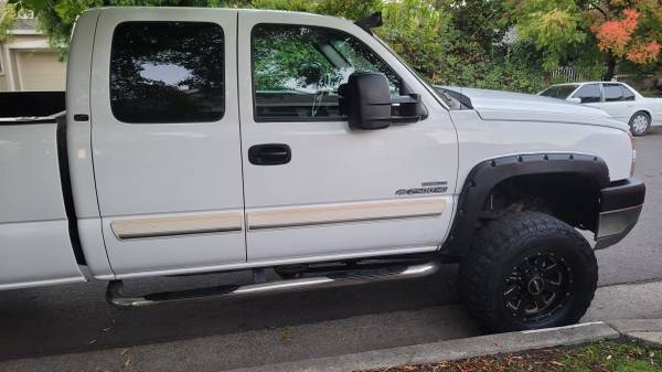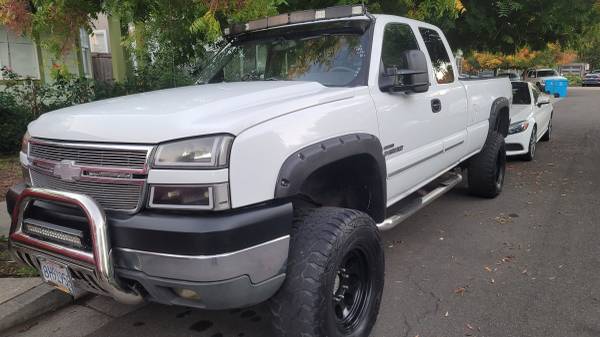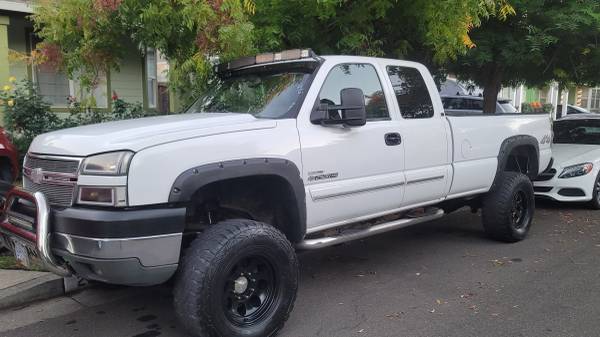 2007 diesel 2500hd 4x4 extra access cab long bed, good A/C and fox 6" suspension big all terrain tires and wheels,bull bar, registration up date. ( check engine on ) but truck works perfect. Pink slip in hand. Any information call show contact info