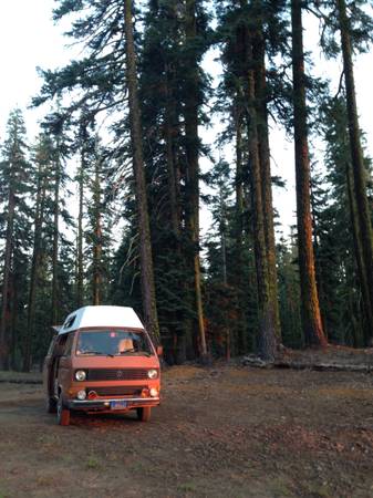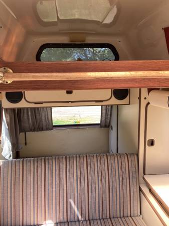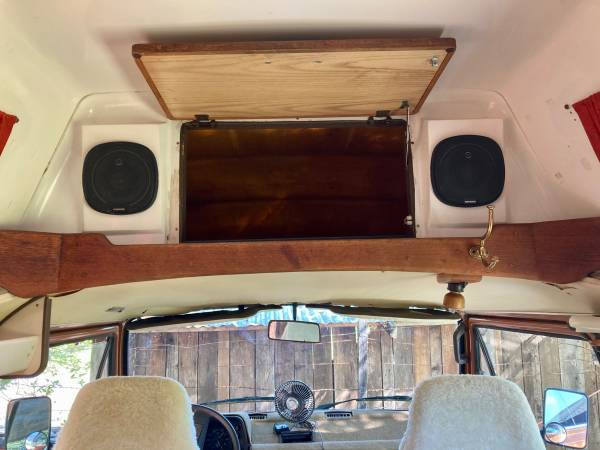 Replaced Pop-Top in 1991 with Ft. Bragg, CA made Adventurewagen Hard Top, which was a game changer. Tons of storage, enclosed over cab and open platform over bed, with great head room, as well as allowing for more discreet camping/parking. Oak trim adds a nice touch. Original Westfalia interior, so it’s a great combination you rarely find.