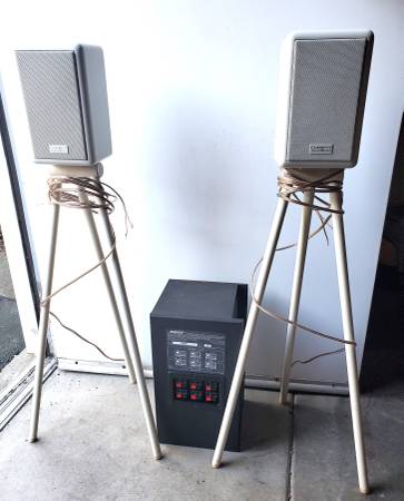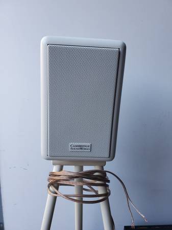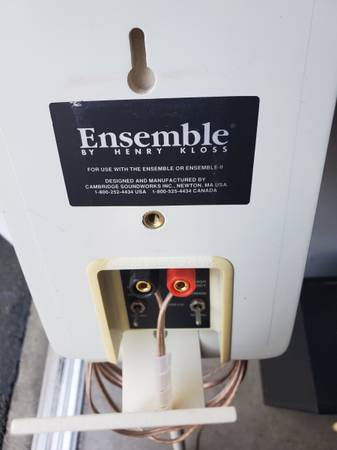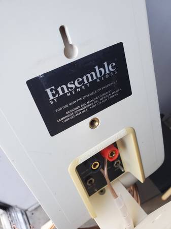 Enjoy high-quality sound with these Cambridge Soundworks Ensemble bookshelf speakers designed by Henry Kloss. Perfect for home audio use, these wired speakers are sleek in white color and have a compact design with dimensions of 6.5” in length and 4” in width. Each speaker weighs 4 lbs. and is compatible with a variety of home audio systems.