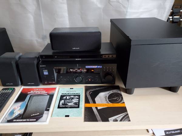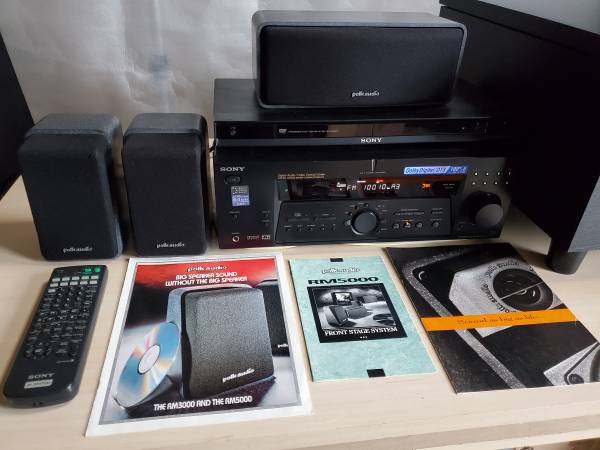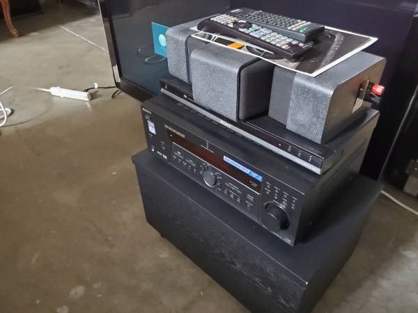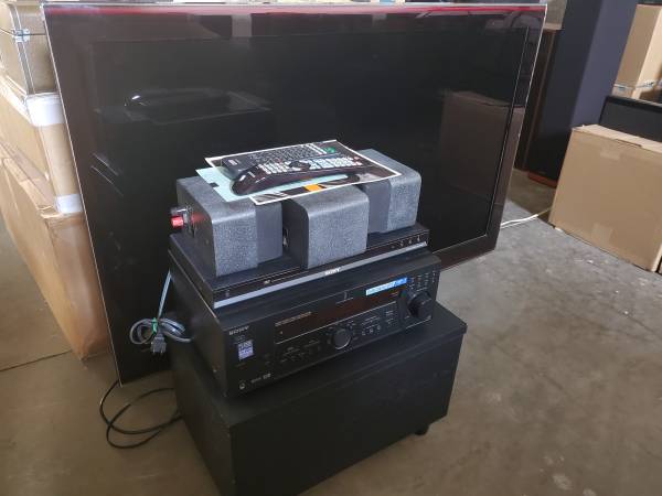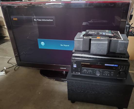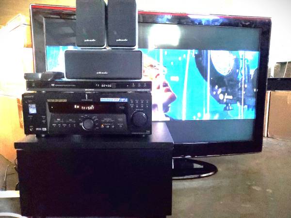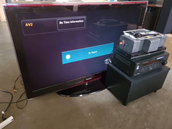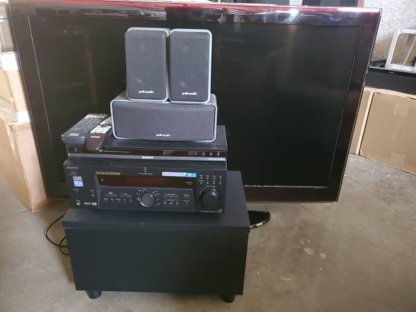 Perfect home theater setup with surround sound. This bundle includes: -52" Samsung TV with remote. A bad pixel about 2" from the left edge. -Polk Audio center speaker, 2 front speakers and...