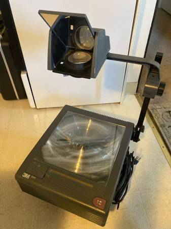 3M 9800 Overhead Projector with dual 400 Watt bulbs(new one just installed). Mirror and lens assembly fold down for easier transport and storage. Works great. $80 Cash Only.