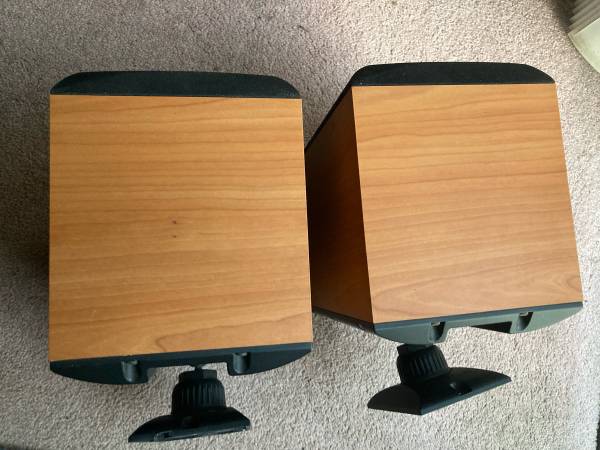 Paradigm Atom v.2 Speakers with wood grain finish and gimbal mounts. Bookshelf or wall mountable. $100 Cash Only.