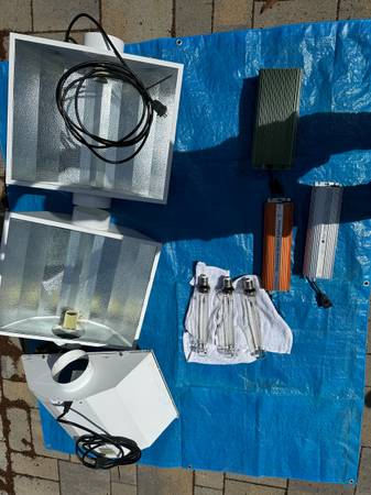 3 individual sets are available at $150 each or $375 for the lot of 3. Each set includes hood with intact glass shield, 1- 1000w bulb, and dimmable electrical ballast. All in working condition and ready to help with any grow needs you have! Amazing deal as 1 newer set is going for over $330.