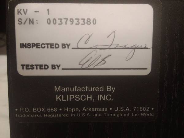 Hi. This guy is great sounding and cosmetically near perfect. This has 2- 51/4 inch woofers and a 1 inch dome tweeter. They have rubber surrounds so there isn't any wory of foam rot. One of the original models. Klipsch is known for their quality of sound and craftsmanship. Sounds wonderful. Made in the USA. $75. Please call show contact info