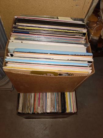 Two boxes (about 150 records) of vintage famous vocal artists, musicals, operettas, Broadway shows, motion picture sound tracks, 20th Cent. Classics of famous recordings etc. from the 1920's to 70's.