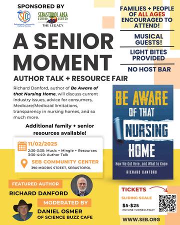 Richard Danford, author of "Be Aware of that Nursing Home," will discuss current industry issues, advice for consumers, Medicare/Medicaid limitations, transparency in nursing homes, and so much more. Moderated by Daniel Osmer of Science Buzz Cafe.