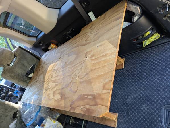 No longer needed. Clean (unlike my car in this pic lol) and has been stored indoors. It was built for my Honda Element as a sleeping platform, which has been great. It also allows for storage...