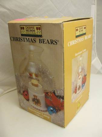 Vintage 1991, new old stock, this 2-piece hurricane lamp has Debbie's iconic Christmas Bears design on the ceramic base. Features include:
