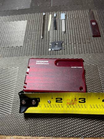 “Quattro” Tool Card - Can fit in wallet or pocket - Knife with handle, Nail file, Tweezers, Toothpick, puncture tool and screwdriver(s) tool - Also has measuring ruler built into case - ($19) - In like new condition!