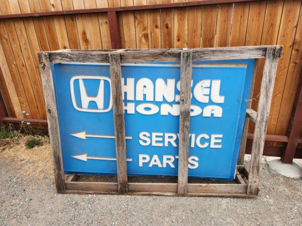 I have these big honda signs for sale, they are plexiglass. All in great shape. They have been stored inside for the past 10 years or so. Asking $350 for each one.