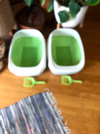Purina Tidy Cat Litter Litter System. I have 2 exactly the same. Had one upstairs and 1 down. I'll sell them both for the price of one = 45. I had just bought all the supplies when my cat died suddenly. There are 6 bags of 3.5 pounds litter pellets they sell for $70, (will sell 1/2 price =$35) The diapers are all brand new in bags, again, will sell everything for reduced price. Trying to recoup some of the $$$ I spent on vets. All together there are 16 purple and 12 Tidy cat brand; 25 green; Equals 53. Sell all of them for $30.00