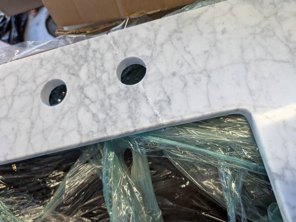 We then bought a top for it from someone off craigslist and my husband stupidly didn't inspect it and it has flaws. I am including the top and can include the repair kit or repair for you. The top has a fracture through it that looks like part of the marble but does in fact need epoxy to stop it falling apart. I didn't want to do it prior to selling and be dishonest. Obviously the other option is you might want a different type of stone top anyway but this one is definitely useable and will look fine/part of the pattern.