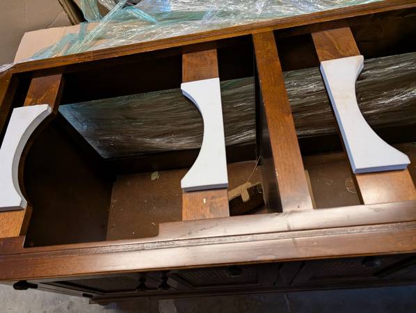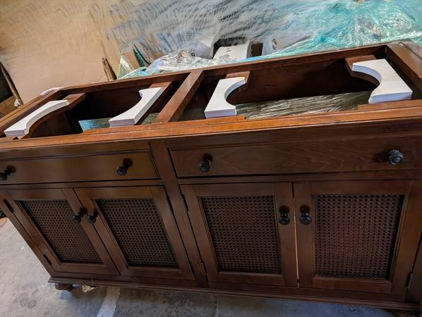 We have kept it for years as we couldn't use it for our original reno due to change of plan and necessary small single vanity. Has moved house with us since as we were looking for an excuse to use but it is taking up space storing it. We fix up houses so may use on future project but figure see if it sells. The wood is beautiful - stock photo doesn't do it justice.