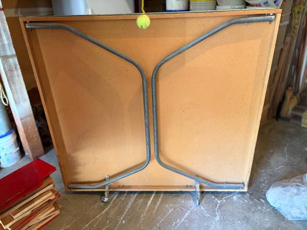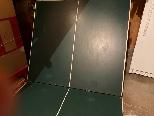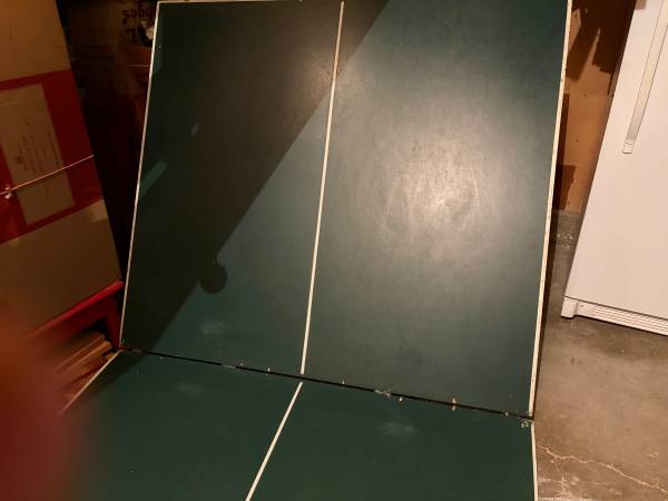 Ping pong table in excellent condition. Table is 60” wide and 108” long. Folds in half and has wheels.