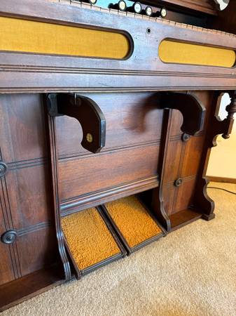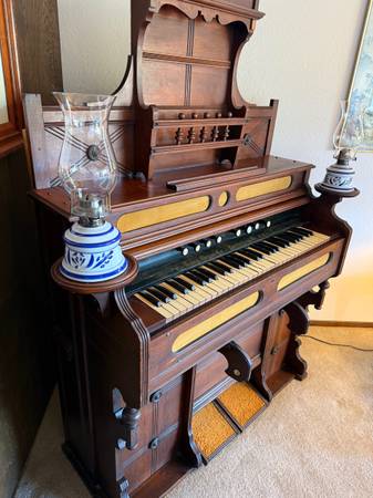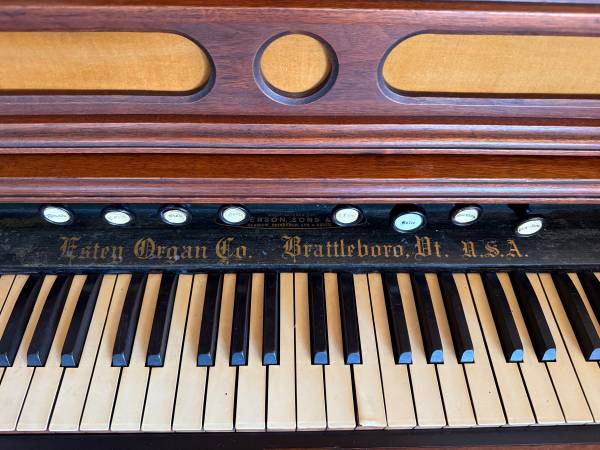 Beautiful antique Estey organ. The exact age of it can be found by taking the top off and looking at the serial number inside, but I’m pretty sure it’s over 100 years old.