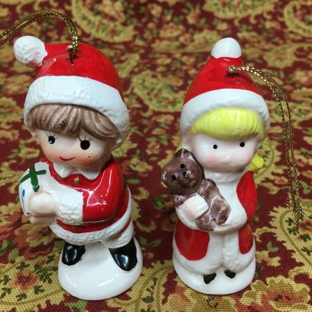 Selling a lot of 5 used Hand Painted Vintage Bone China Christmas Ornaments in good condition no cracks or chips accept 1 little chip on back end of santa. all standing figures are about 3" tall and 1.5" wide the santa figure is 2.5" tall by 3" wide. all ornaments are made off Bone China. If you have any questions or interested email me with your contact info and I will get back to you. Available for shipping if needed.