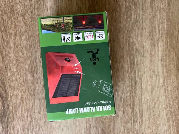 ***SOLAR ALARM LAMP (RED) WITH REMOTE -- NEW IN BOX!!! *Solar Motion Alarm -- 129 decibel Siren with Red Strobe -- Remote Controlled. *Solar-powered PIR sensor, multiple modes. IP65, includes...