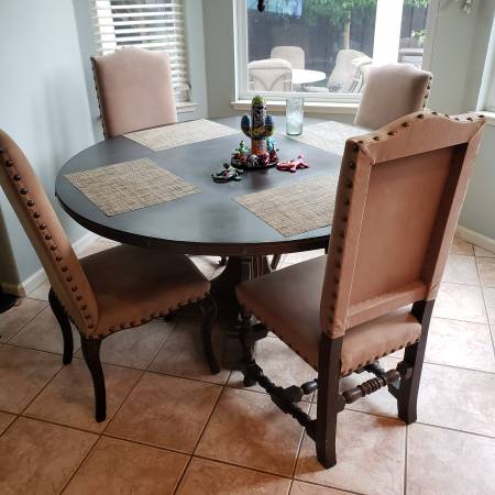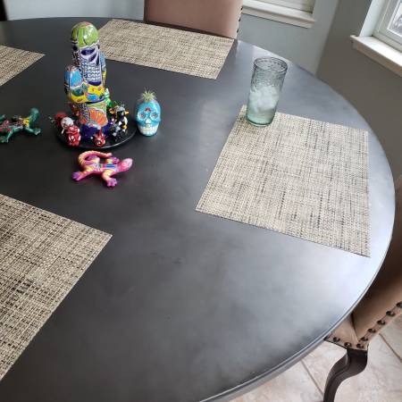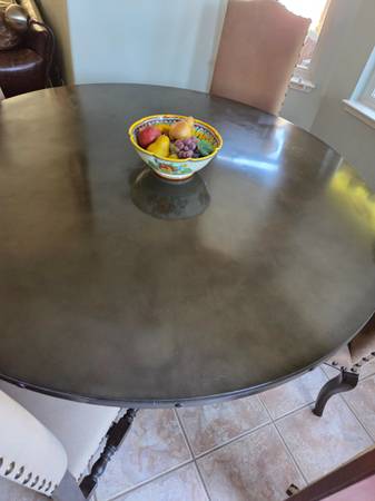 Moving soon selling a very nice Restoration Hardware zinc table. It's in great condition and comes with two Restoration Hardware chairs along with two Pottery Barns chairs.