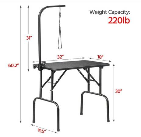 For sale: Foldable pet grooming table in good condition. This was very useful when we had pets but no longer have them. If ad is up, it is still available. Thank you!