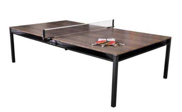 🏓 Quickly converts into a full-size ping pong table for after-hours fun - does not have net or paddles. Net can be purchased for $40 from several companies.
