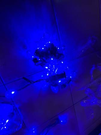 Very cool blue Christmas lights. Sell for $8 a string on Walmart. Buy my 4 strings for $15....