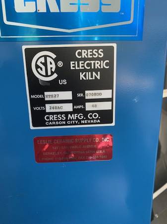 We have for sale a CRESS Kiln Model # ETS27 in Like NEW condition. Comes with all Paperwork and Manuals. Comes with additional shelves - See Photos - Regular price $4,100.00 without Vent or Extras - We are selling as is with everything as shown in the photos.