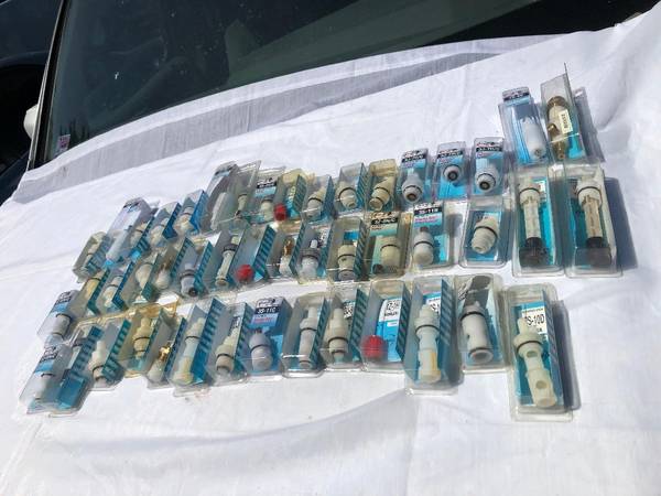 Plumbing parts and stems all brand new (approx 47) 6 x Delta 7S- 4D. 3 x Delta 7S-10D. 3 x Delta Peerless 3S-2H/C. 5 x Nibco/ Streamway 3J-4H/C. 3x Phoenix 3J- 9H/C. 3x Peerless Larden 3J-7H/C. 3x...