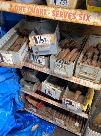 High speed steel drill bits from about 5/8 inch to about 2 inch diameter. Taps from about 3/4 inch to about 3 inch. National course, national fine, national special, ancme and more. $5 a pound...