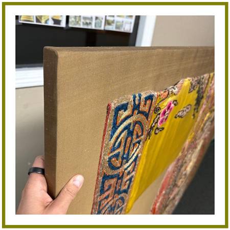 Design Plus Gallery presents a Framed Chinese Theater Dragon Robe from the Late 19th Century, Qing Dynasty. The robe is mostly yellow with embroidery all over the every aspect of the fabric and the front side is what is shown. A truly magnificent piece to add to your home with its grand proportions, luxurious and artistic components, and colorful aspects. The robe and the frame are both in good condition with minimal signs of wear for their usage.