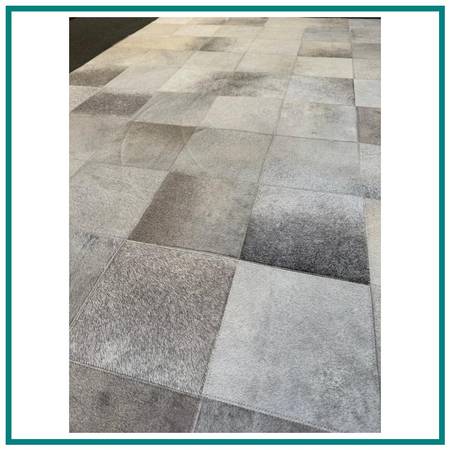Design Plus Gallery presents a 5ft11in 9ft Ancora Hair on Hide Rug from Restoration Hardware. The geometric, tilelike patchwork in complimentary hues of gray, taupe and off white is both classic and contemporary. Hand stictched by skilled artisans, this classic rug is a great foundation for many styles. Light surface wear; condition is consistent with age and use. Made in Brazil.