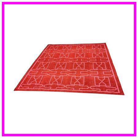 8ft 6in X 9ft 8in Raspberry Red With Pink Trellis Flatweave Rug. 8ft 6in X 9ft 8in Raspberry Red With Pink Trellis Flatweave Rug