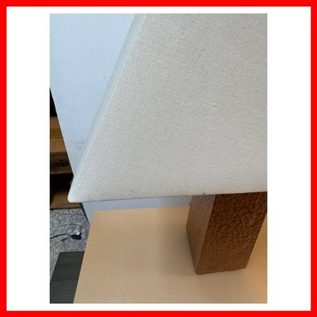 Design Plus Gallery presents a Handcrafted Artisan Table Lamp. A geometric silhouette is softened by repetitive carving that creates an organic texture. Double bulbs, with chain pulls, and an extra cord switch. Finished with a trapezoid linen shade and carved finial. Light wear; condition is good for age and use.