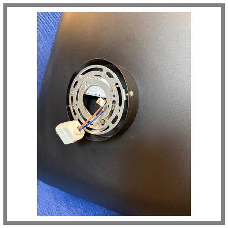 Design Plus Gallery presents a Lederam Manta Pendant Light from Catellani Smith. The Manta Pendant features a gracefully curving shade that embodies fluidity. The smaller disc suspended from a metal rod houses an integrated LED module that shines light upward, which is then reflected outwards by the organic shaped shade. Finished in black with a gold Leaf interior and disc. Includes black mounting plate to cover standard US junction box. Little wear; condition is good. Made in Italy.
