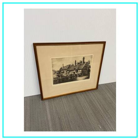 Design Plus Gallery presents an Etching of Anne Hathaways Cottage by Cecil Forbes for Dickens Old Curiosity Shop. Cecil Forbes was a 20thcentury artist known for creating realistic, detailed etchings of historic landmarks, including Anne Hathaways Cottage, the childhood home of Shakespeares wife. This is a limited edition of 50 with signature. Forbess work captures the iconic thatchedroof farmhouse in a traditional style. It has a wood frame with gold trim. Item is in good condition, visible and minimal surface wear that is consistent with use.